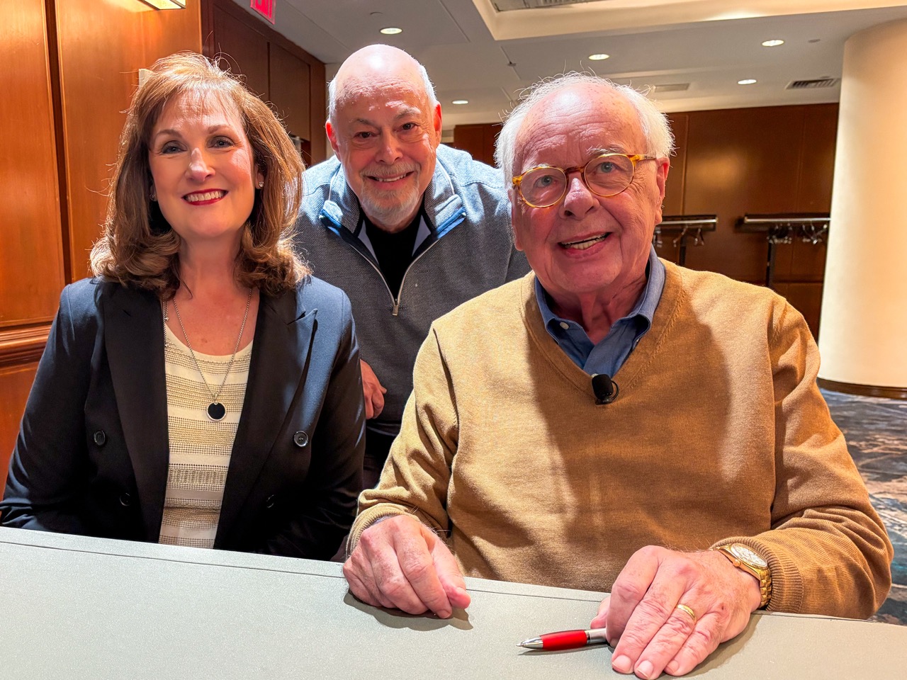 The second photo shows Jay, Debbie, and Nick Murray at a conference in New York in October 2025.